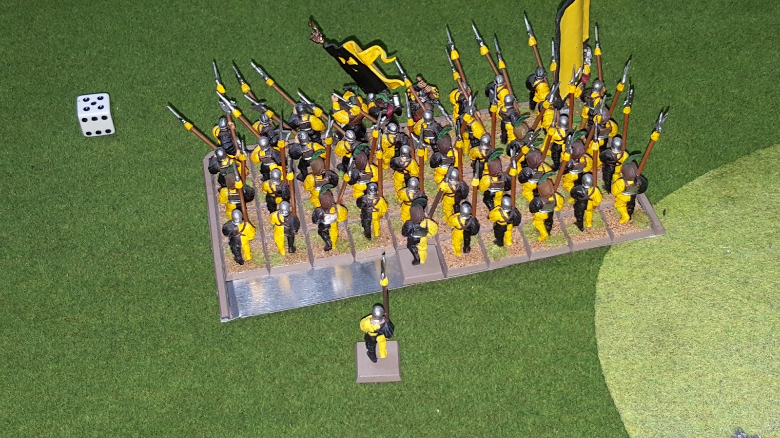 The Knights and Rangers on the flank all move up. The Rangers slightly more forward to try and goad either the Giant or Tiger to charge them. The Crossbowmen and Halberds stay put.